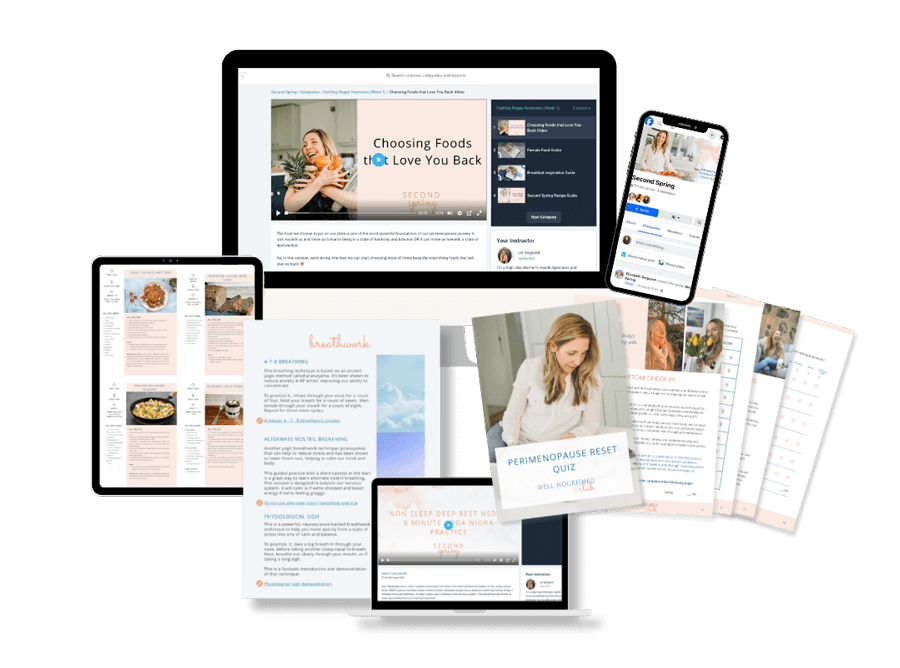 You will unlock lifetime access to the Perimenopause Reset Formula and the tools, resources, and guidance inside Second Spring to continue evolving on your perimenopause journey.